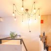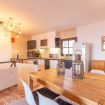 cocina-comedor americana con cocina eléctrica, horno eléctrico, microondas, refrigerador-congelador, cafetera, calentador de agua, tostador y exprimidor