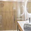 cuarto de baño con lavabo, combinación de ducha y bañera, bidet y secadora de pelo