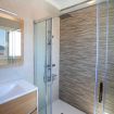 cuarto de baño con lavabo, ducha, bidet, water y secadora de pelo