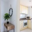 cocina con cocina de inducción, horno eléctrico, microondas, lavavajillas, refrigerador-congelador, cafetera, calentador de agua, tostador y exprimidor