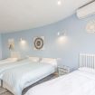 Le troisième étage offre des murs courbes chaleureux, un salon de style circulaire, une élégante chambre extra-large et une salle de bains en-suite entièrement blanche vous assurent l'espace de vie. Une chambre double bleu marine avec salle de bains familiale avec douche à l'italienne, une cuisine familiale et un petit espace bureau si vous avez des e-mails ou du travail en retard. En sortant sur les balcons ensoleillés, vous profiterez de vues panoramiques sur la mer et aurez la possibilité de vous étendre en toute tranquillité si vous souhaitez faire une pause du reste de votre groupe.