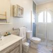 2 salles de bains en-suite, chacune avec lavabo simple, douche, toilettes et sèche-cheveux