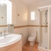 salle de bains attenante avec lavabo simple, douche et toilettes
