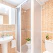 badkamer met wastafel, douche en toilet
