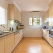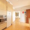 keuken met electrisch fornuis, electrische oven, magnetron, afwasmachine, koel-vriescombinatie, koffiezetapparaat, waterkoker, broodrooster en citruspers
