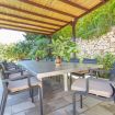 Esta villa cuenta con hermosos espacios al aire libre y vistas parciales al mar desde el nivel superior. Pasa tiempo alrededor de tu piscina privada, o toma el sol en un extenso césped salpicado de árboles frutales y palmeras. El césped también tiene una barbacoa de leña/carbón y una gran mesa al aire libre, el lugar perfecto para cenar al aire libre.