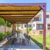 Para un poco de privacidad y sombra, relájate entre dos terrazas separadas. La terraza más grande domina el césped y cuenta con una elegante mesa de comedor con tapa de vidrio con capacidad para ocho personas.