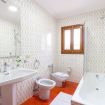Baño con lavamanos individual, combinación de bañera/ducha, bidé, inodoro y secador de pelo